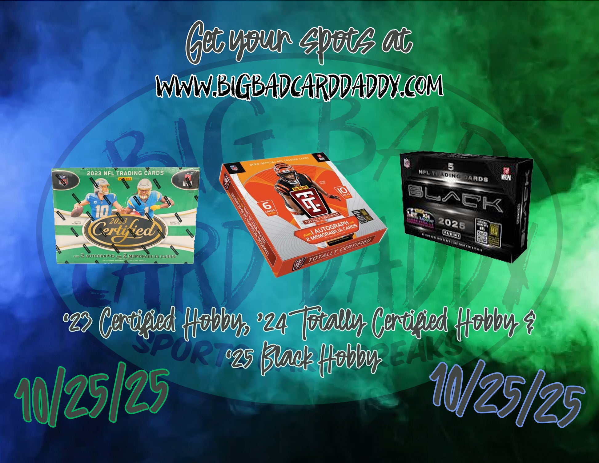 1 ‘23 Certified Hobby, 1 ‘24 Totally Certified Hobby & 1 ‘25 Panini Black Hobby.